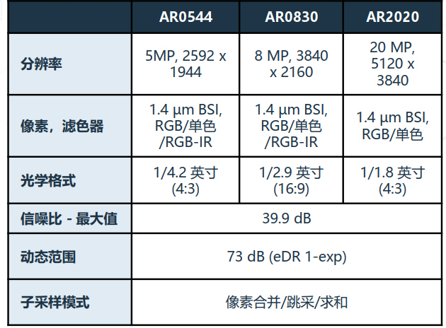 • 支持电子卷帘快门(ERS) 和全局复位释放(GRR) 模式