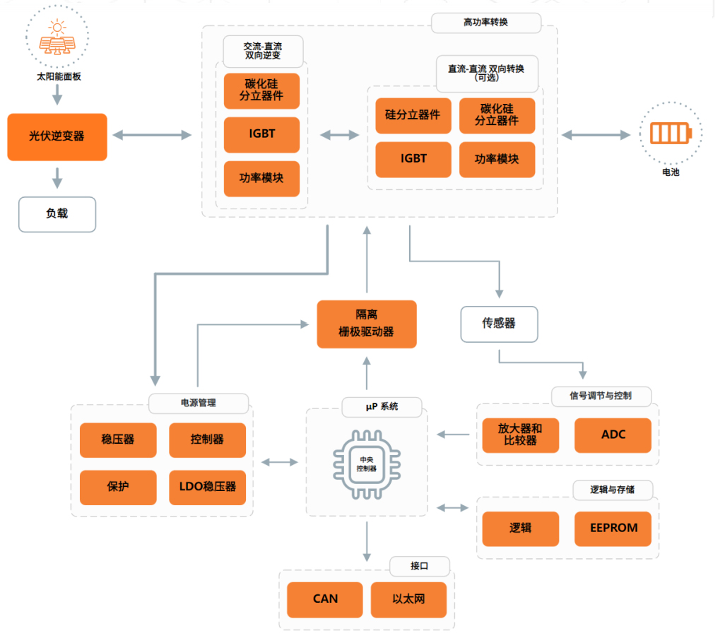 安森美打造的光伏逆变器解决方案,聚焦电源管理与功率转换技术的落地。安森美提供品类齐全的产品,涵盖分立碳化硅(SiC)器件、绝缘栅双极型晶体管(IGBT)、功率模块、隔离式栅极驱动器及电源管理控制器,助力系统实现更高的功率密度和效率。
