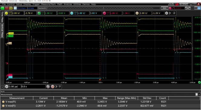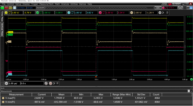 组网更灵活:打破传统CAN FD适用局限,多节点复杂星型组网下仍保持高质量总线电平波形,拓扑设计更灵活。